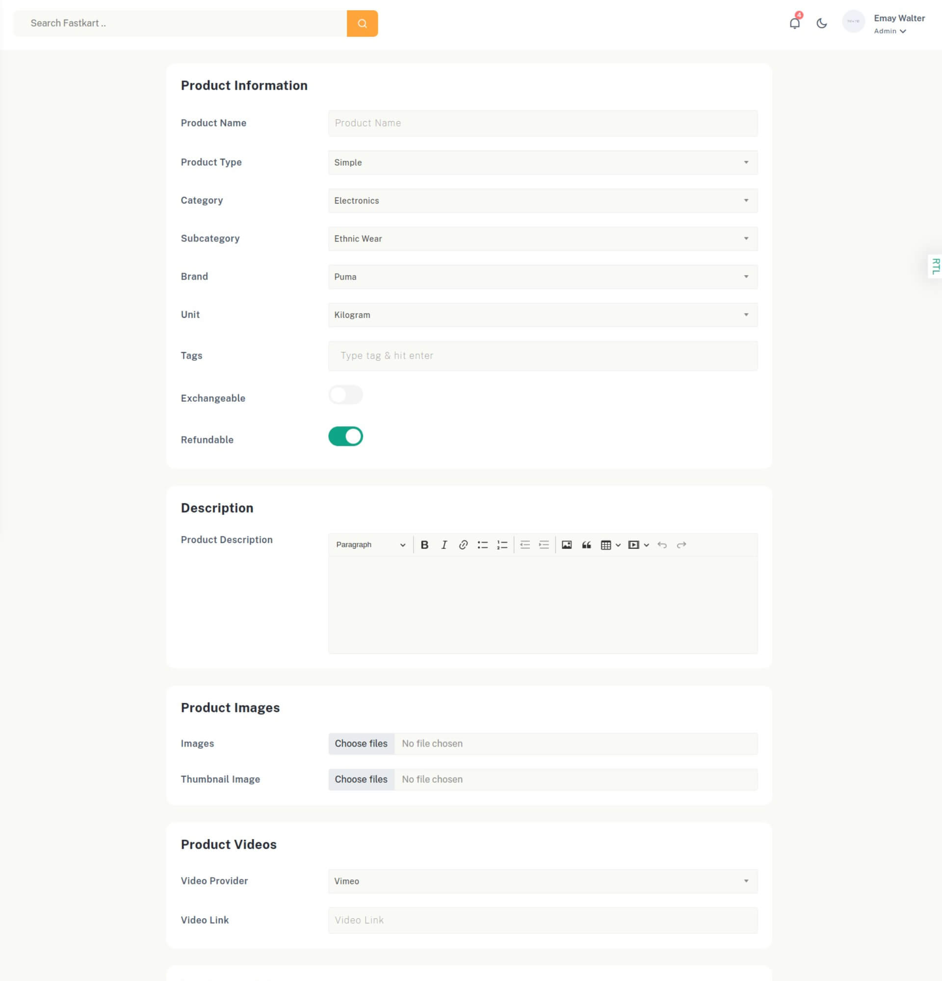 Fastkart supports multi-languages so its easy to design website on other language.