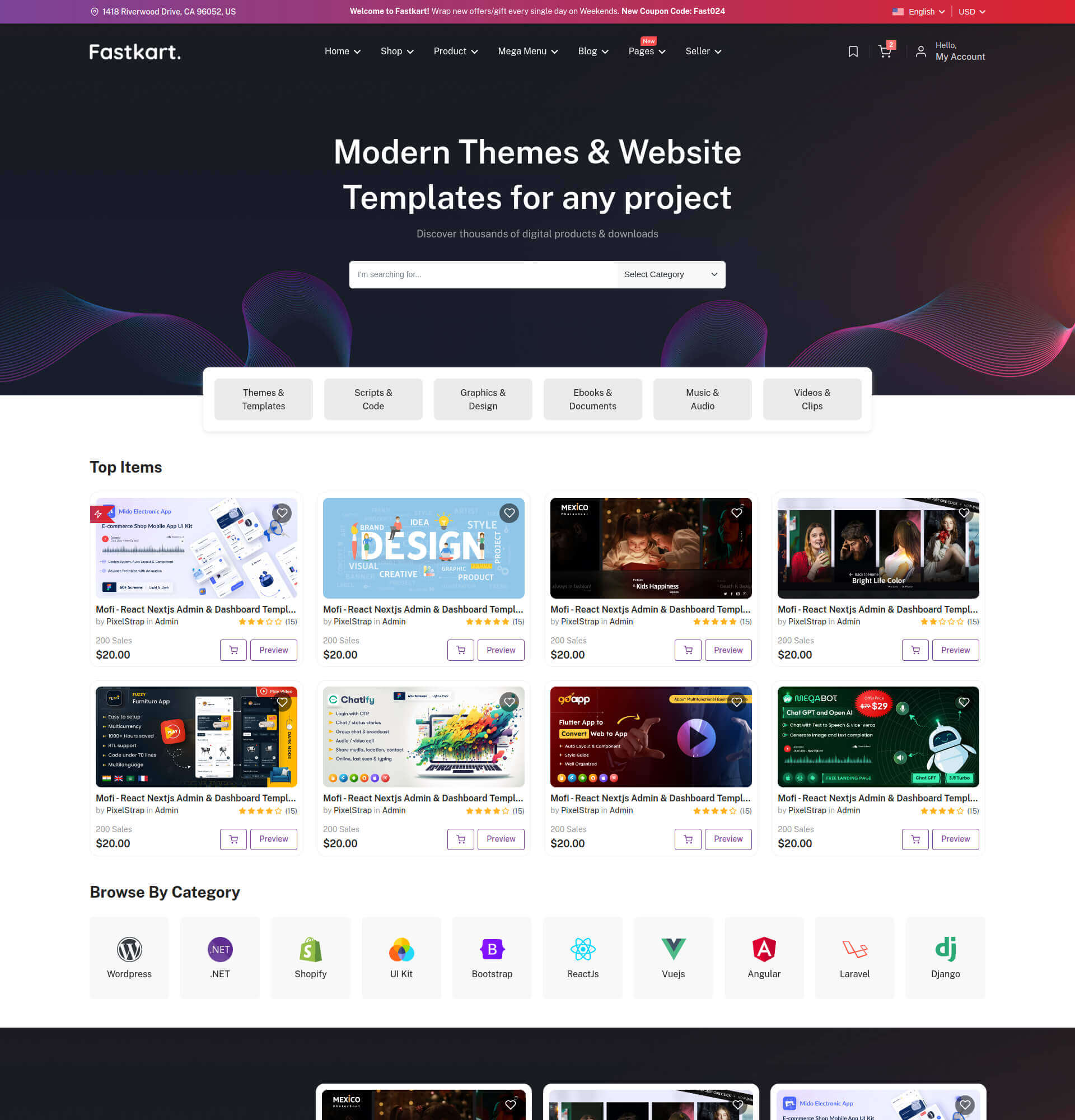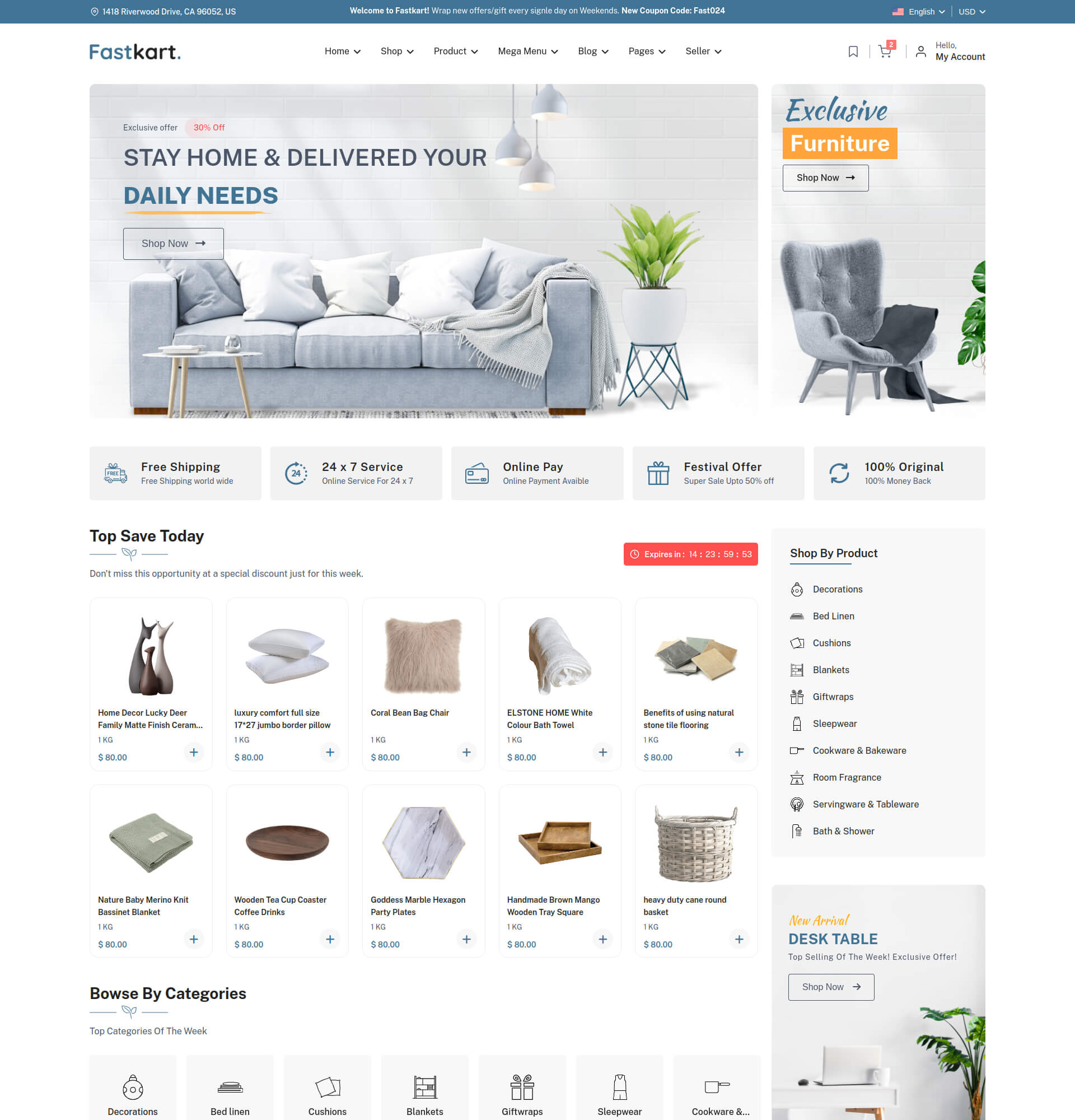 Fastkart comes with several headers and footer options for you to use on your website.