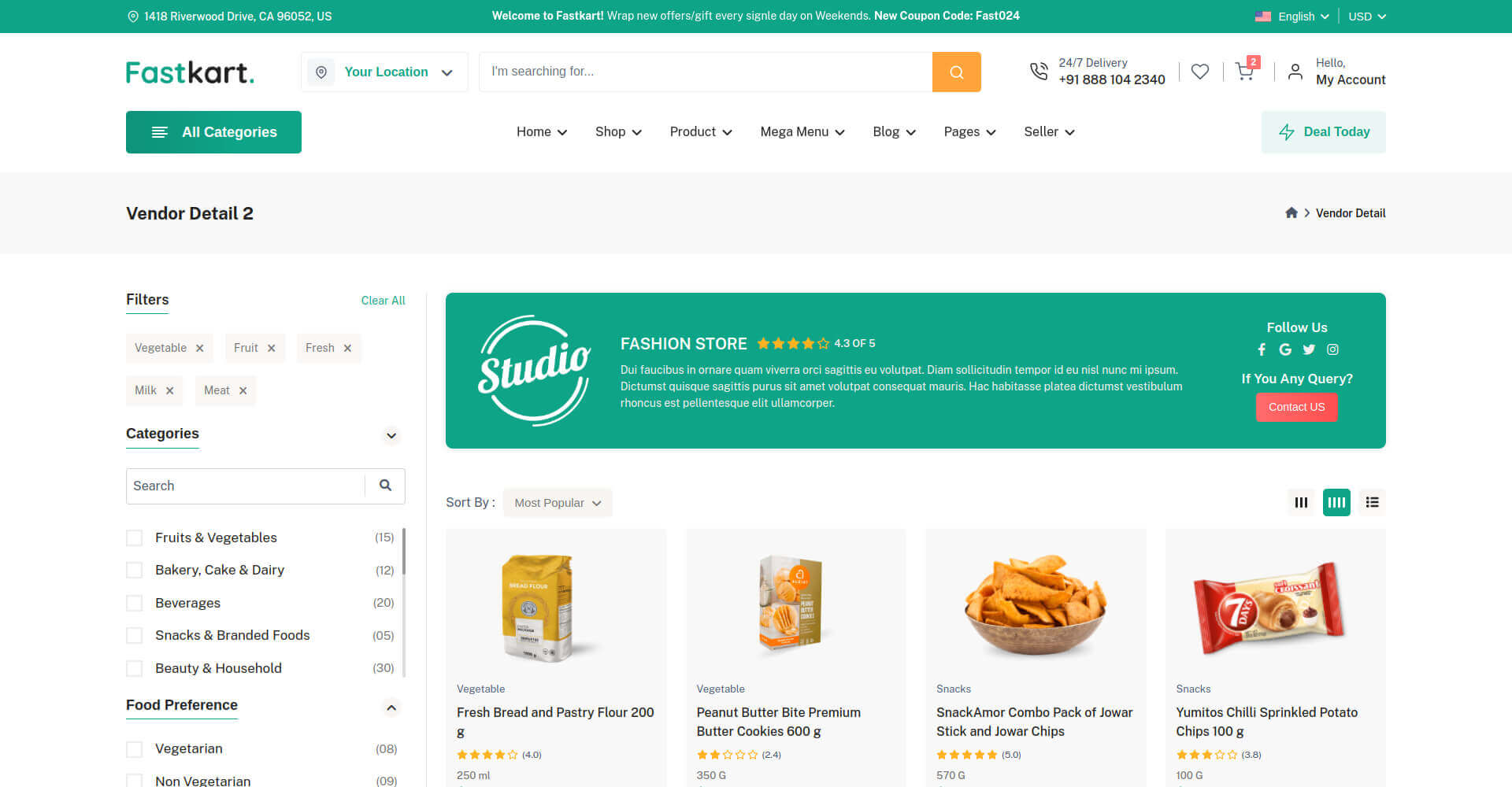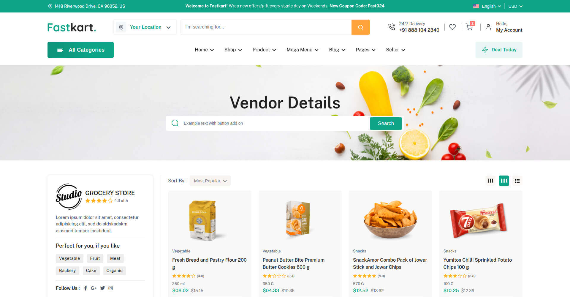 Fastkart comes with several headers and footer options for you to use on your website.