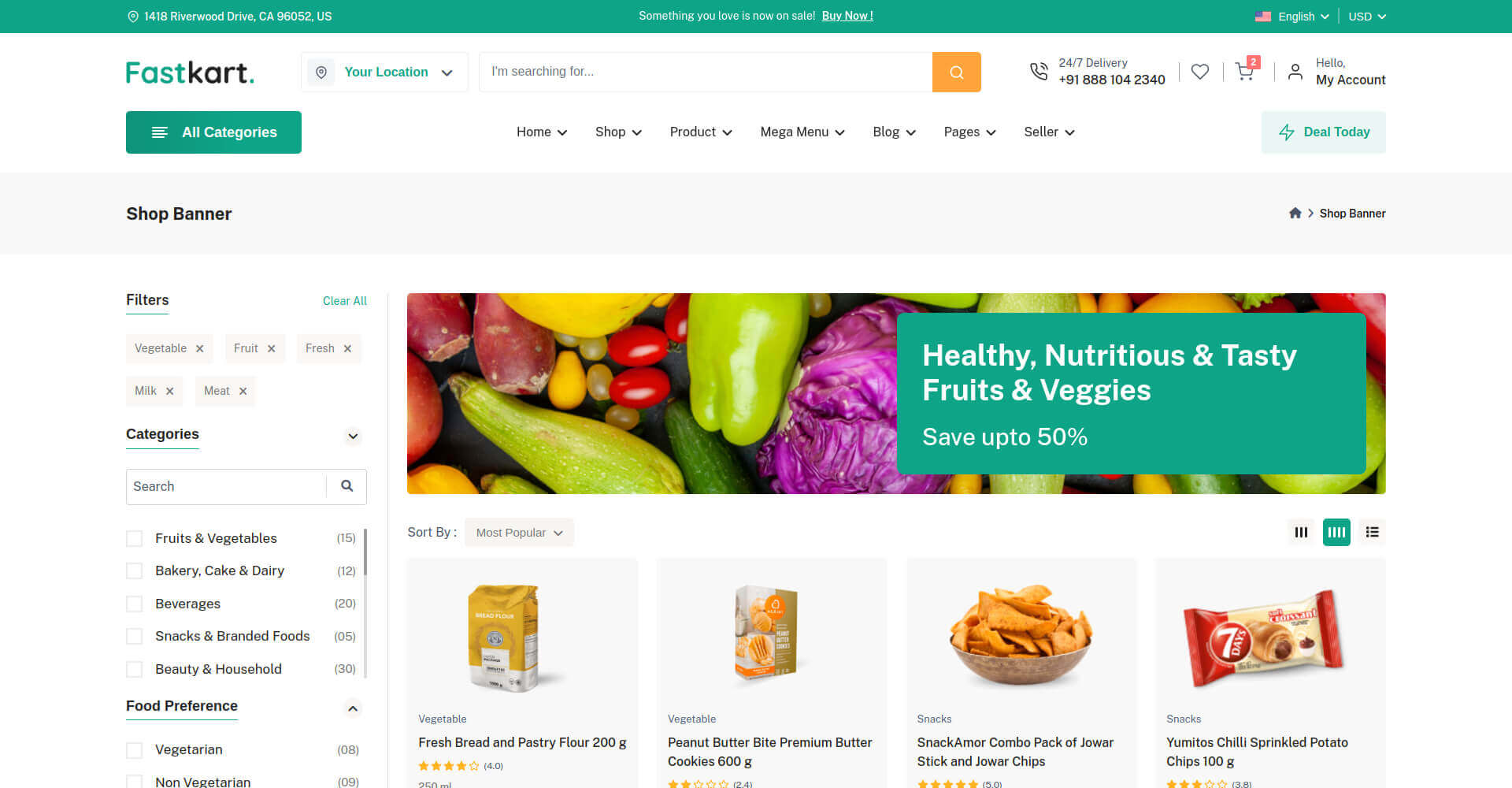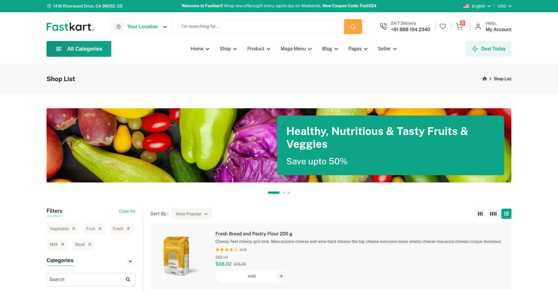 Fastkart includes 7 variations of Shop pages & 5 variations of Product pages.